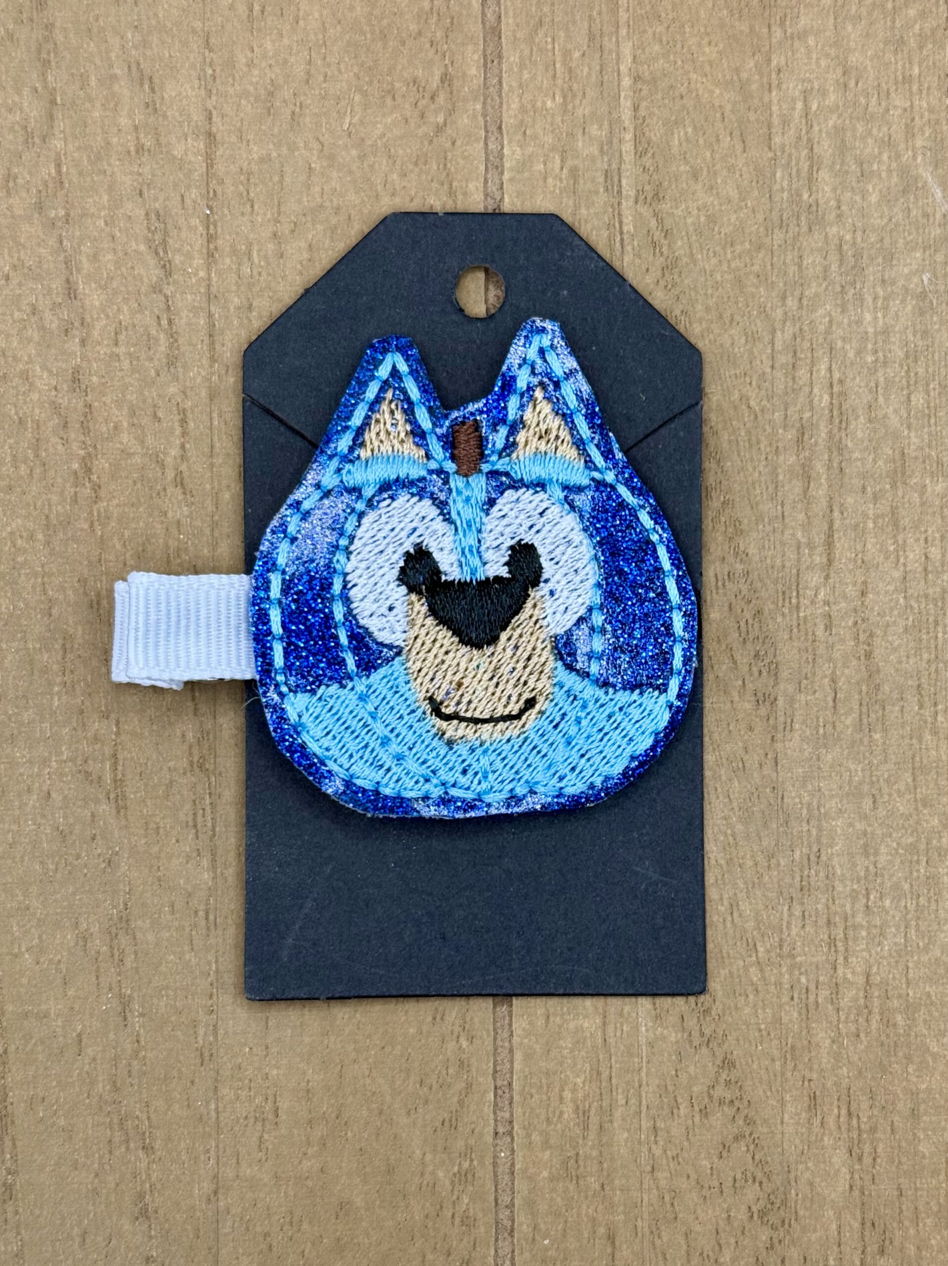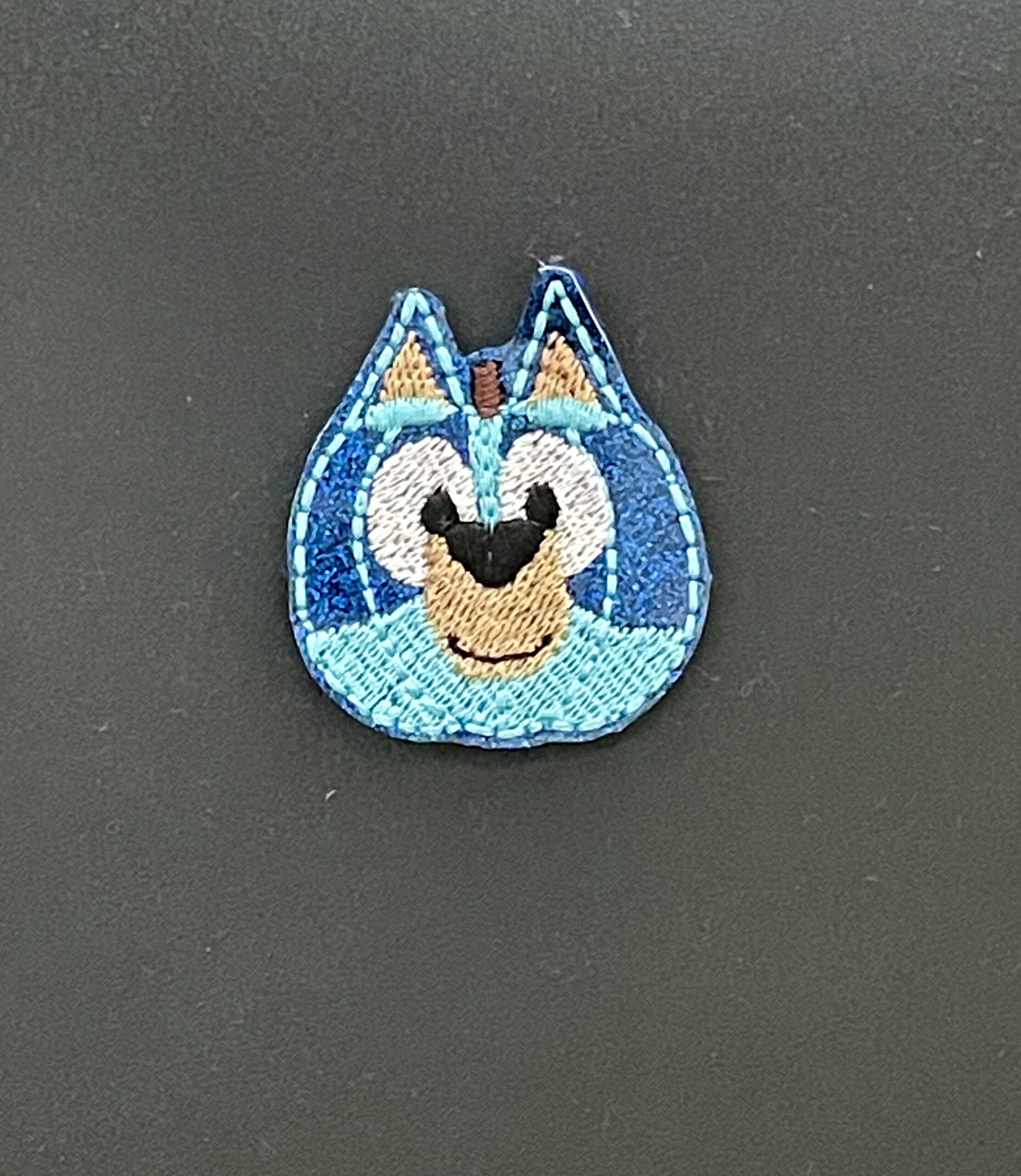 This embroidered appliqué features the ever popular blue dog in the shape of a pumpkin for the Halloween/Autumn season.