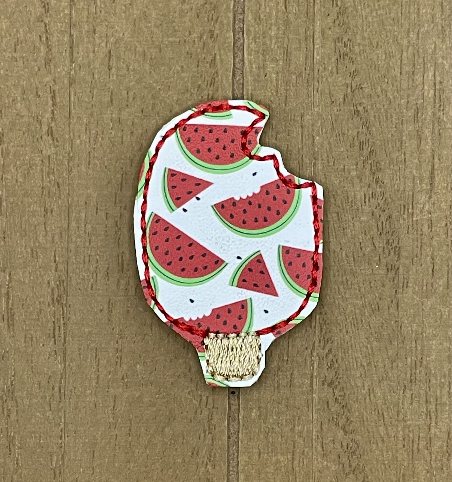 This popsicle shaped embroidered appliqué features a fun watermelon pattern.